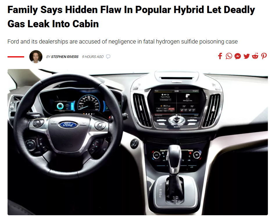 原告律师在起诉书中直指两大核心问题:一是福特未能设计安全的电池排气结构,管路连接存在先天设计疏忽;二是车辆未配备任何硫化氢检测或报警系统,缺乏最基本的安全冗余