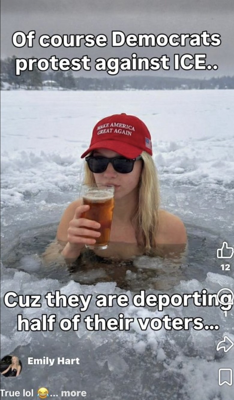 其经常在平台分享的标志性内容包括穿比基尼冰钓、喝Coors Light啤酒、手持步枪射击,再加上佩戴MAGA帽子发表政治言论,精准击中美国保守派男性的情感与价值观需求。