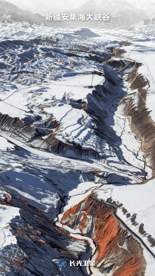 卫星影像清晰记录了安集海大峡谷随季节更迭而变换的“衣裳”。