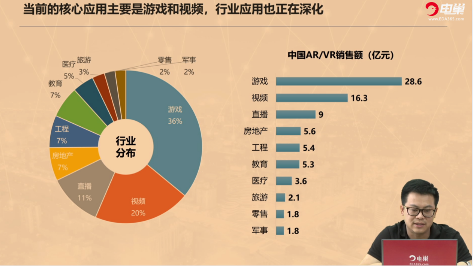 VR/AR两者之间有什么区别?被用在哪些场景?行业风口啥时候到来?陈玮老师用多图为直播间的朋友们做了详细阐述。除此之外,老师也提出了VR/AR解决的是平行世界的问题。物理世界与线上虚拟世界信息是存在割裂的,而虚实融合通过想象力会产生多行业用途。当前主要应用在游戏和视频行业,其他行业应用也正在深化。例如房产的VR实景看房,军事领域,未来将会大力发展“智慧军营”。现今,VR/AR应用也正在从C端走向B端,更加多元化,逐渐向服务与生态发展。日后,医疗、旅游、驾校培训等等都将逐渐开始应用。随后,首席产品官熊旭老师也带来了远见睿视的新产品MAXS巨幕观影机,单反级高清画质,沉浸式视听体验,小巧便携。这样具有革新意义的观影产品也在此次直播间被电巢的忠实粉丝揽入囊中。他表示,这么多年他都坚持在这个行业,正是因为看到了现在是行业的风口,所以更应抓住时代机遇,乘风破浪!