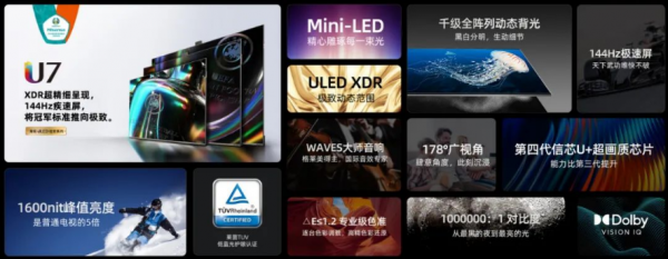 值得一提的是,活动现场,海信还表示将为全国球迷送上价值超1亿的看球熬夜补贴,全力支持球迷们的足球狂欢,并重新重磅推出了马德兴所说的U7电视,即海信为欧洲杯专门打造的看球利器——U7冠军系列电视,以致敬欧洲杯60周年。可谓名字未变,热情未减。