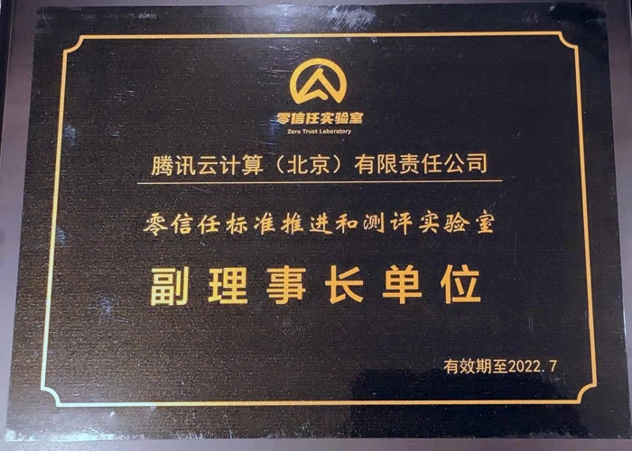 (腾讯安全获零信任实验室副理事长单位认证证书)