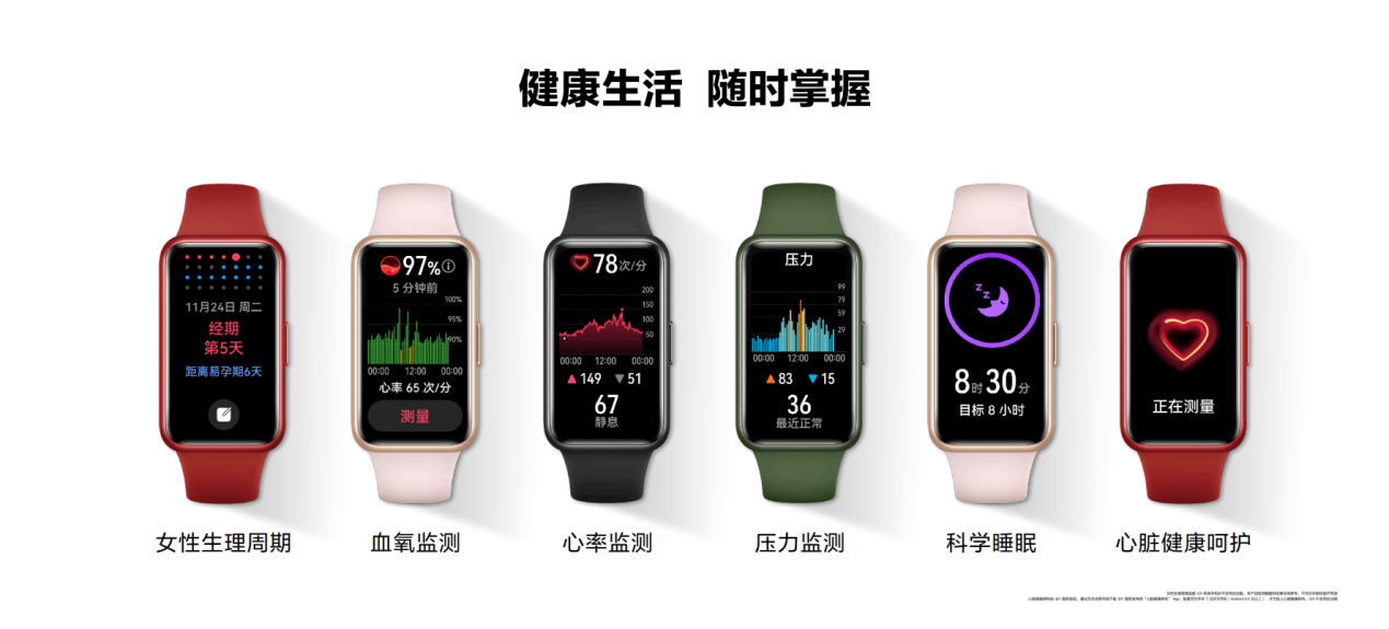 健康监测是智能手环的核心功能之一,也是华为运动健康产品的核心优势。本次华为手环7不仅拥有专业的健康监测功能,同时还需要具备引导帮助用户养成良好的健康生活习惯的能力。