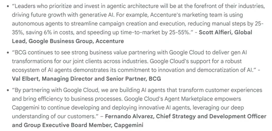 Google分享的实际AI Agent应用案例非常多,并且那些用户给出了非常高的评价。