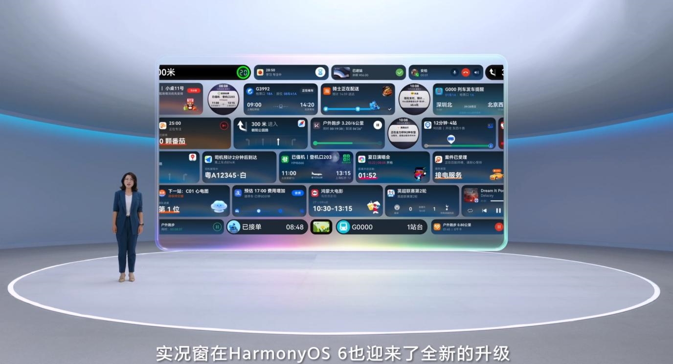 实况窗进一步升级,信息展示更丰富,支持卡片直达功能,12306实况窗可查看车次/座位并直达接送车、订餐;航旅纵横实况窗新增天气动效,提醒航线夕阳/赏月景观,还可在手表显示、耳机播报。