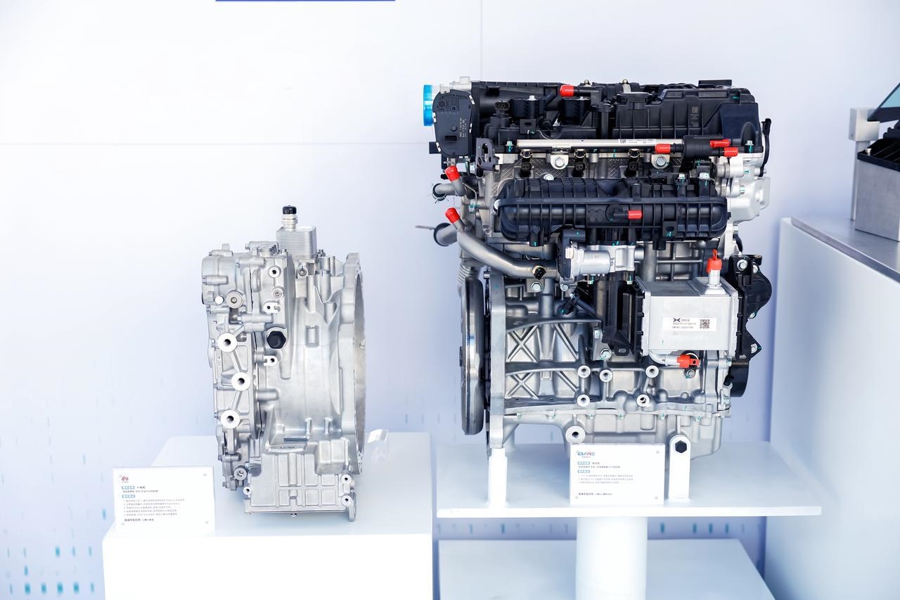 左侧为华为P1电机,右侧为东安动力增程器发动机