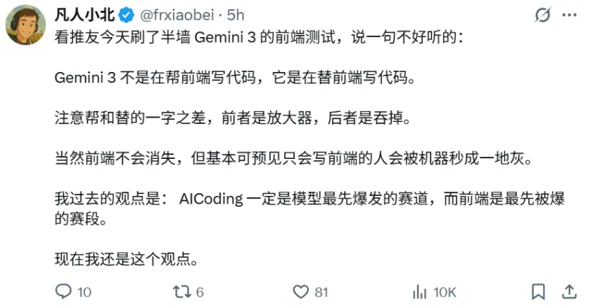 同时,Gemini 3 Pro也获得了业内人士的高度评价。