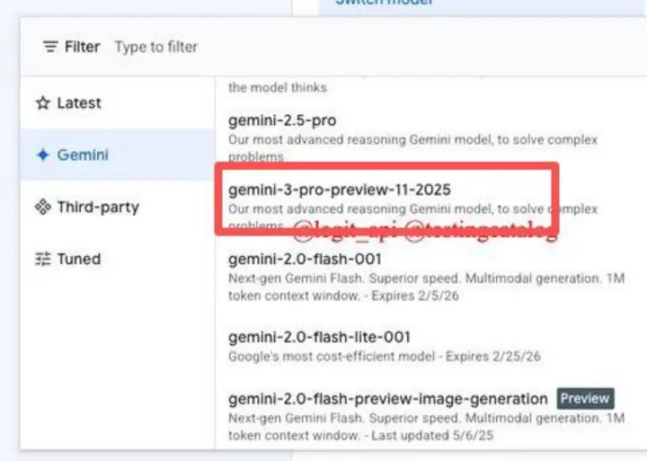 而且眼尖的开发者还在Vertex AI的API文档中发现了“gemini-3-pro-preview-11-2025”的字样。