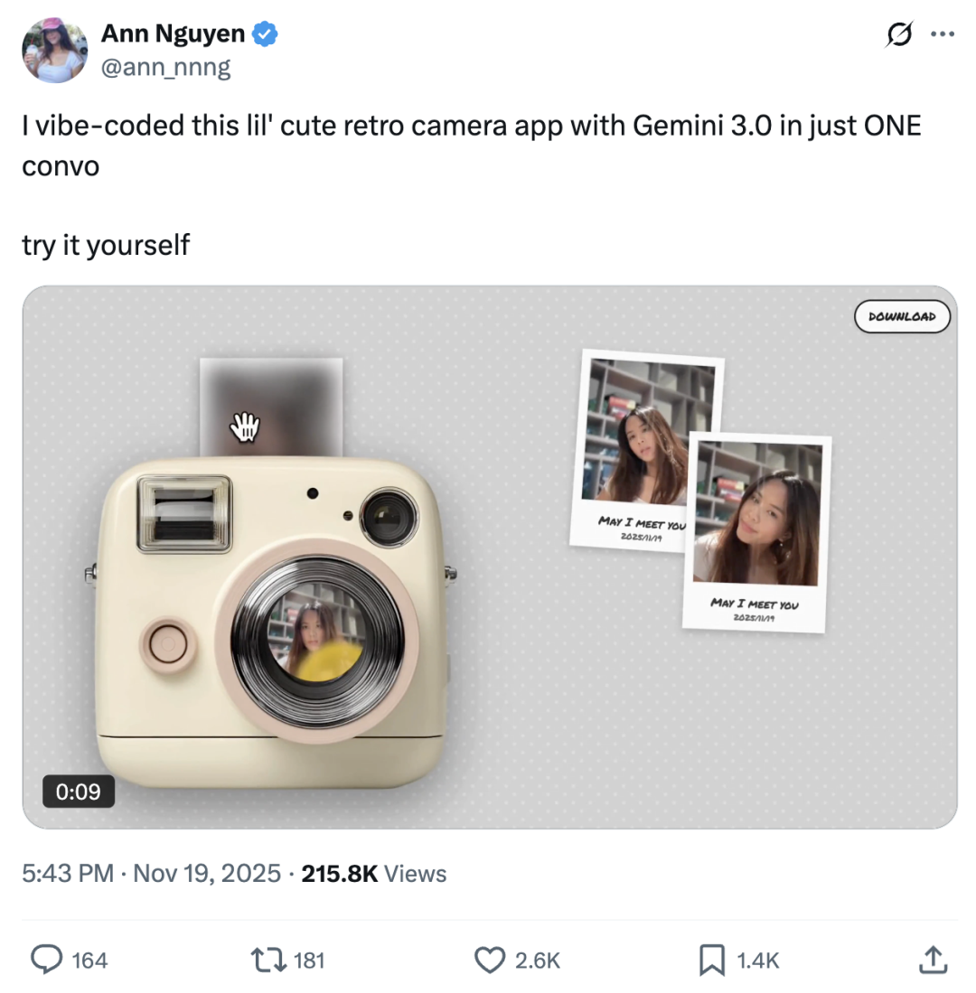 Gemini 3 Pro单次生成效果,be like: