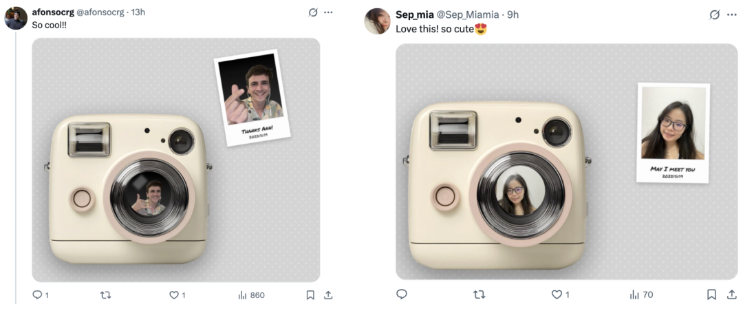 摆好pose,点击快门,带有复古滤镜的照片直出: