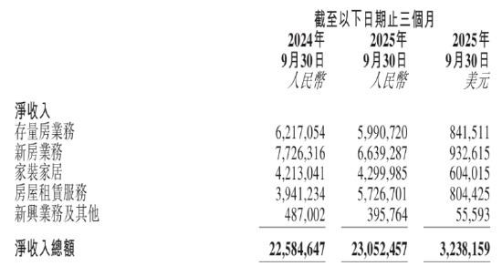 房地产市场整体低迷是贝壳业绩承压的大背景。2025年第三季度,贝壳存量房业务交易额虽然增长5.8%至5056亿元,但由于加盟门店主导的成交额比重不断提升,净收入却下降了3.6%至60亿元。新房市场承受的压力更大,本季度贝壳新房业务总交易额为1963亿元,大跌13.7%,直接拖累了板块收入同比下降14.1%至66.4亿元。