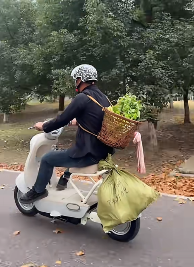 至于新国标电动车带东西的需求,有网友发的抽象视频显示,他自己背了一个菜篮,电动车尾部还绑了一个麻袋,也算勉强解决了新国标车载物的难题。
