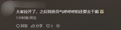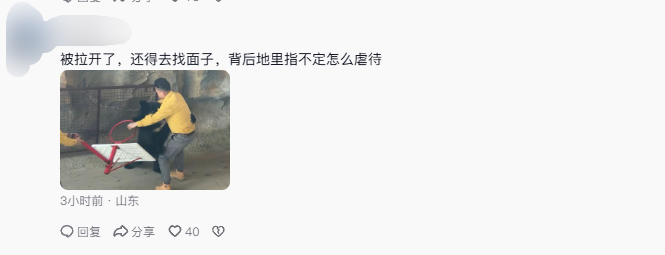 不过,有网友指出:“大家拉开了,之后饲养员气呼呼呼的还要去干熊。”同时,不少网友借此呼吁取消动物表演。