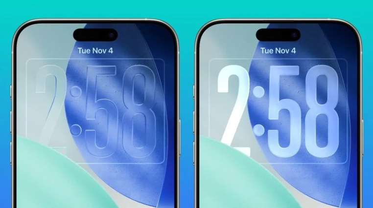 锁屏自定义菜单新增“液态玻璃”滑块,可无级调节时钟区域的不透明度(从清晰到磨砂质感),适配不同风格壁纸,解决此前固定效果导致的文字识别问题。