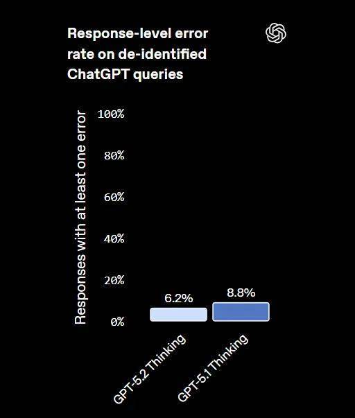 GPT-5.2 Thinking 的幻觉率显著低于 GPT-5.1 Thinking。