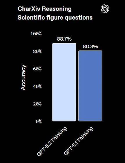 在这些评估中的提升,反映了 GPT-5.2 更强的多步推理能力、更高的定量准确性,以及在处理复杂技术任务时更可靠的问题解决能力。