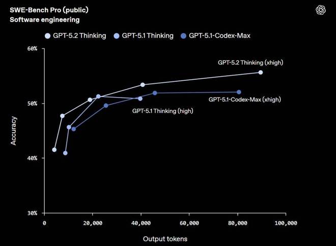 这使得 GPT-5.2 Thinking 可以处理更多依赖工具、运行时间较长的工作流,而不会受到上下文长度的限制。