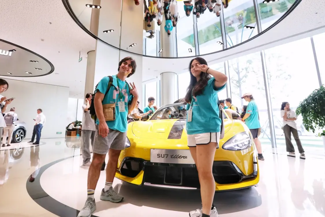 参观结束后,游客有充足的拍照机会。大家可以试驾小米 SU7。这款外形酷似保时捷、起价约3万美元的车型目前还需要排队等候。游客还能以约2美元的价格(约合14元)在员工餐厅享用标准套餐。