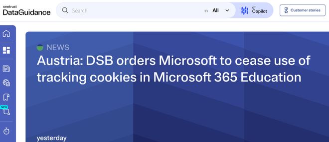 据DataGuidance报道,奥地利数据保护机构(DSB)作出裁决,认定微软公司在未经同意的情况下,向使用Microsoft 365教育版的未成年学生设备非法植入追踪Cookie,该行为已构成违法。这是总部位于奥地利的数字隐私活动组织“不关你的事”(noyb)在相关案件中取得的又一胜诉。