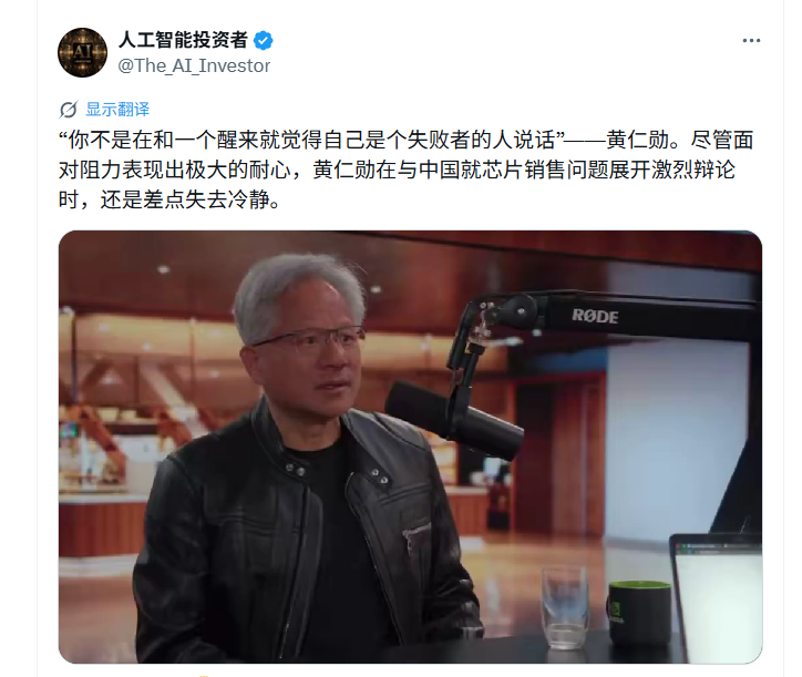 “你不是在和一个醒来就觉得自己是个loser的人说话!“黄仁勋在被问及向中国销售芯片的问题时罕见失去冷静。近日,NVIDIA CEO黄仁勋做客一档播客节目,就美国是否该向中国出售AI芯片的争议话题,和主持人德瓦克什・帕特尔( DwarkeshPatel )展开激烈辩论。面对接连的追问和质疑,黄仁勋险些情绪失控。他直言对华芯片禁售的主张极度愚蠢,是典型的失败者心态,更留下了“你不是在和一个Loser说话”的强硬表态。