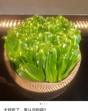 Amazing!谁能想到在物流如此发达的 2025 年,网上冲浪竟然还能遇到没有见过的神奇蔬菜。请看,下面这盆仿佛二次元漫画里才有的、发着光的植物,实在是过于抓人眼球了——当然,更令人心动的是博主那句:“太好吃了,有认识的吗?”