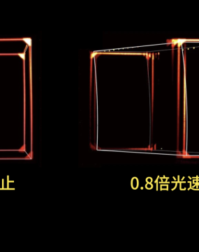 它没有缩短,反而转起来了!你可能会想起在中学课本上学到的相对论,当物体以近光速运动时,它的长度会缩短,这一现象早已被各种各样的物理实验证实。所以你大概会认为,如果有一个立方体从你面前以近光速经过,而你的视力又恰巧非常好,你应该会看到这个立方体在运动方向上被压扁了。