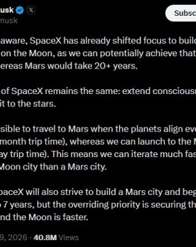 马斯克于当地时间周日晚间在社交媒体上发表长文,表示SpaceX的发展方向由火星殖民转向月面永久基地:“SpaceX已改变工作重心,目标是在月球建立一座有自持力的城市,实现该目标也许用不了十年,而火星基地要花不止二十年。”