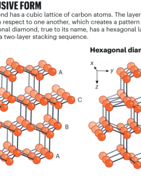 大家都知道,钻石,或者说金刚石,是自然界最坚硬的物质,不过在它之上还有更强的王者:六方晶系金刚石,也叫朗斯代尔石。郑州大学与南京大学等团队的研究人员,在实验室中首次合成出毫米级尺寸的纯相六方金刚石,一举终结了困扰科学界长达60余年的争议。