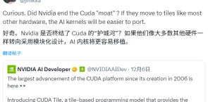 NVIDIA近期正式推出了CUDA 13.1,官方将其定位为“自2006年CUDA平台诞生以来最大、最全面的升级”。此次更新的核心亮点CUDA Tile编程模型,却引起了业界关于NVIDIA“护城河”是否会被削弱的讨论,知名芯片架构师Jim Keller认为这可能标志着该软件排他性的终结。