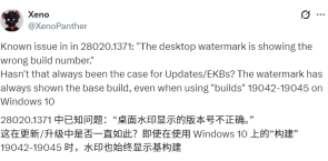 近日,微软向Canary频道的内测用户推送了Build 28020.1371,该版本修复了文件资源管理器和开始菜单的多项问题。微软在更新日志中确认,由于系统错误,桌面右下角的水印无法显示正确的版本号。