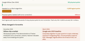 长期以来,安全专家一直警告称,量子计算机可能对传统密码技术构成根本性威胁,动摇整个数字加密体系的安全基础。 最新研究显示,具备“密码学相关能力”的量子计算机(CRQC)要想攻破目前广泛使用的RSA和椭圆曲线密码(ECC),所需规模可能远小于此前主流预测,这意味着现行加密系统在更短时间内就可能暴露于量子攻击之下。